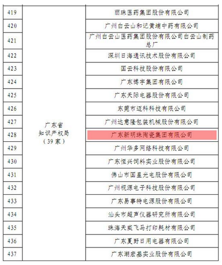 近日国家知识产权局公示2015年度国家知识产权优势企业评审结果,新明珠陶瓷集团入选2015年度国家知识产权优势企业,广东省共有39家企业入选,新明珠陶瓷集团是陶瓷行业唯一入选企业。