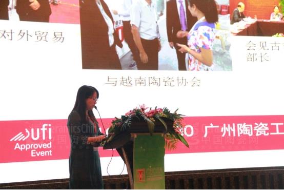 作为陶瓷行业重要一员,广州陶瓷工业展主办—中国贸促会建材分会积极参与到陶机分会的筹备,陶瓷部项目负责人卢宏萍当选为陶机分会副秘书长。卢宏萍讲到“2016广州陶瓷工业展”坚持致力于推广陶瓷行业高新产品和尖端技术,工作重点放在国内外买家观众组织及为展商提供更多更实惠的服务上,真正实现展览平台向价值平台的转变;2016广州陶瓷工业展延续往届新成果、新技术,以及新型陶瓷产品的未来发展趋势,在2016年现场会议更侧重从使用方的需求出发,把新思维带到陶瓷产品的应用设计中来。在会上,卢宏萍展示了16年广州陶瓷工业展展会预订情况,一楼已经基本招满,新一期项目正式启动,一位难求情况再次重现,有意向参加的企业要尽早做计划,以免错过参加展会的最佳时机。