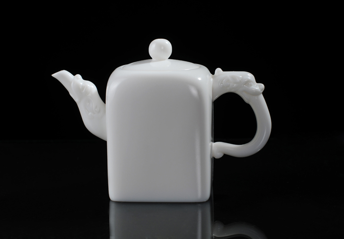 作品简介:白瓷胎骨洁白,坚实致密,有凝脂似玉之感,迎光透视,色泽光润明亮,晶莹剔透,用白瓷做成的茶壶在琳琅满目的茶壶市场上独树一帜。手工制壶轮廓线条分明,纹理清晰,珠圆玉润,烧成后质感非常好,这是注浆难以达到的。执壶在手,光润洁白,如脂似玉,手感极佳,令人爱不释手。