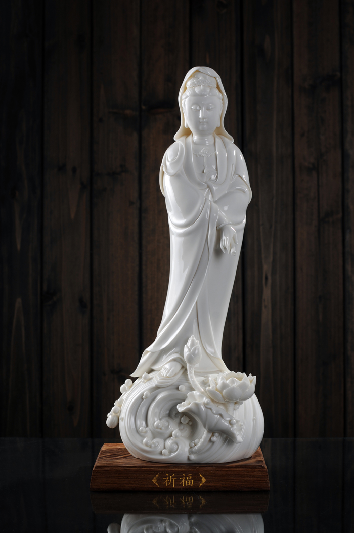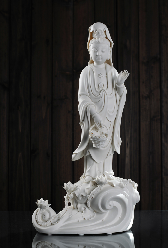 作品简介:颜松柳力作,当代德化大型观音雕塑作品《百态观音》系列作之一。作品精雕细刻,线条流畅,衣纹自然、飘逸,温润如玉,更展现其纯净、高雅的“东方女神”之魅力。