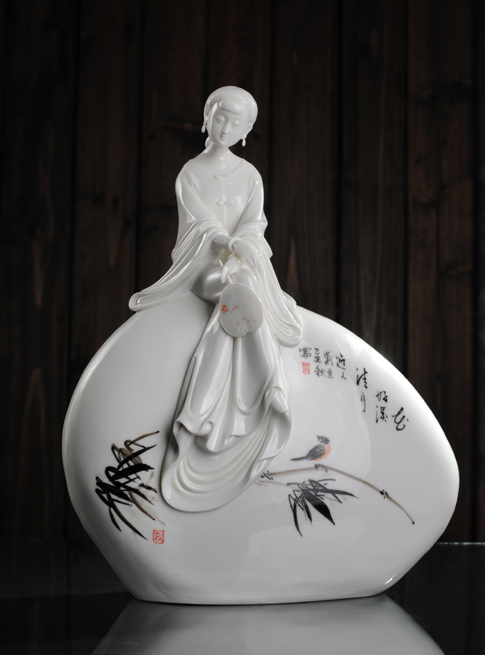 作品简介:《清风明月》以德化优质的白瓷为材料,运用极其概括的艺术手法,表现女子的清雅闲适,清凉的风,明朗的月,一切都恰到好处。