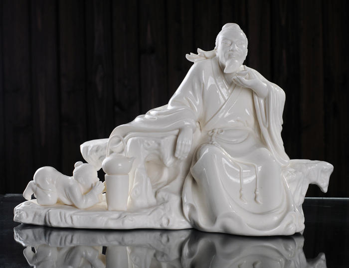 作品简介:《欢天喜地》以德化特有的温润如玉的“中国白”为胎质,纯手工制作,所塑人物神态逼真,风格洗练,弥勒坦胸露腹,胸饰项链,笑容可掬,好一幅欢天喜地的画面。作品具有很高的欣赏价值。