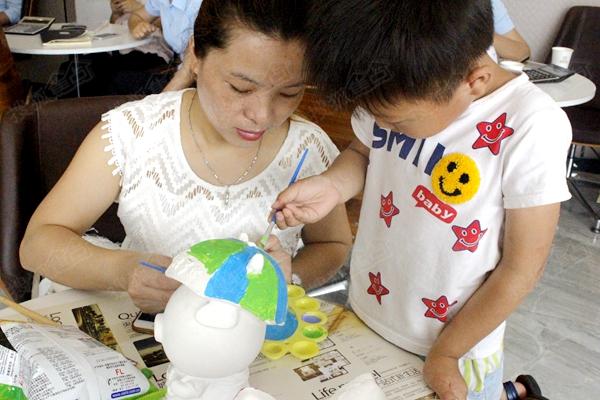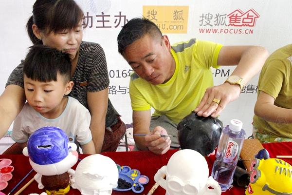 嘉宾们都仿佛变身艺术家一样,一手拿着画笔,一手托着调色板。面对着陶瓷娃娃,一笔一笔描绘出象征活力与热情的缤纷色彩。只见史努比、阿狸、叮当猫…形象各异、妙趣横生的陶瓷娃娃形象,在嘉宾们灵巧的双手下逐渐成型。一些小嘉宾的手上更是沾上了五颜六色的色彩,煞是好看。浓厚的艺术氛围伴随着家长与孩子欢快的交谈与爽朗的笑声,一幅幅幸福温馨的画面呈现在了人们的面前。