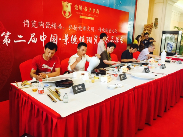 于昨天开幕的第二届中国·景德镇陶瓷艺术品鉴会今天仍在金屋秦皇半岛举行。今天到场的五位陶瓷名家是:揭金平,现为景德镇非物质文化传承人,江西省高级(国家一级)技师;余千松,江西省高级工艺美术师;俞暄,江西省工艺美术大师;熊镇生,出身于景德镇陶瓷世家,系景德镇陶瓷美术名家;杨曙光,国家一级画师。