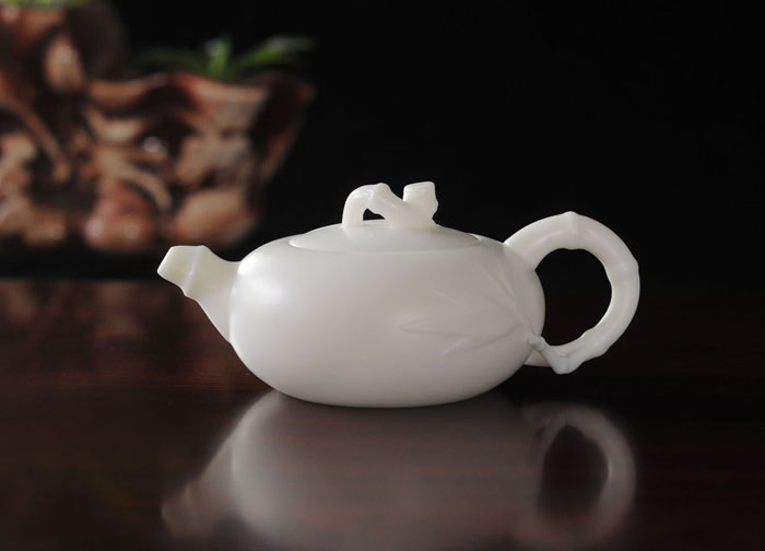 在本次展出的作品中,还有一大亮点,由高级工艺美术师曾逸腾带来的手工玉瓷壶、玉瓷杯系列作品,其所创作的玉瓷系列作品,采用上等稀有原矿德化白瓷泥(每吨瓷泥达几万至十几万元),经70多道手工艺制作,在1300多度高温下烧制而成,瓷壶白如雪、润如玉,白度达95%以上,灯光下瓷质非常通透,具有较高的收藏鉴赏价值。