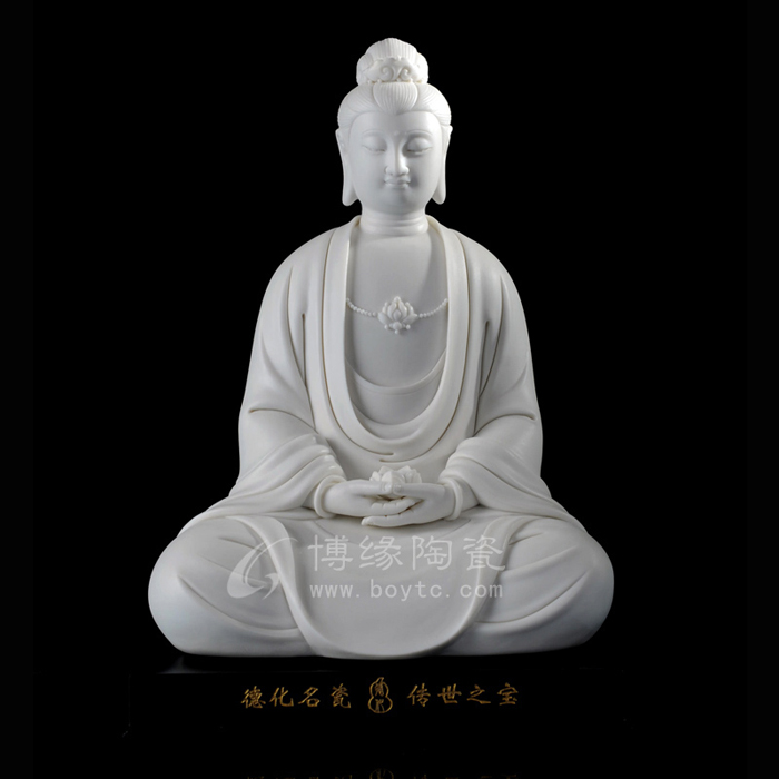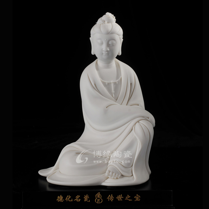 在追随何朝宗艺术脚步的同时,林建平也一直在寻找着突破。他努力把德化古代的制瓷工艺与自我净心感悟的思想有机结合,展现当前审美的简约风格。广受欢迎的《瓷韵观音》和《持莲观音》便是这种创新的代表作,从传统工艺中走出的新的审美理想,照样创造出佛像的庄严、肃穆、慈悲、大爱。