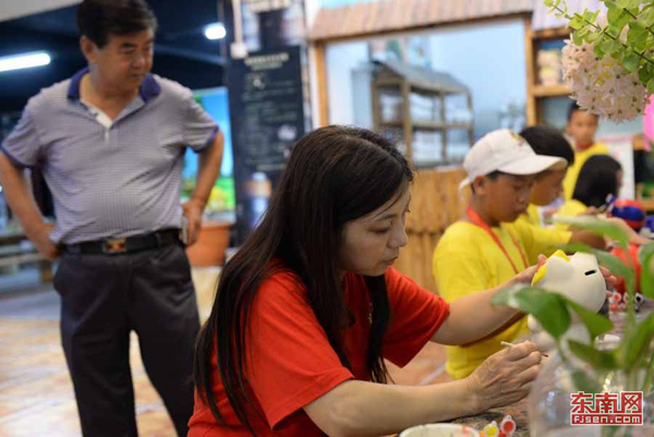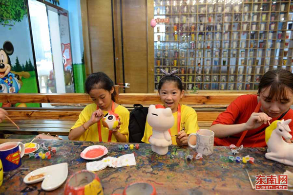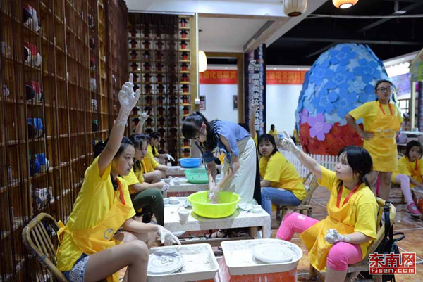 7月6日,德化的顺美陶瓷生活馆迎来了50多位“中国寻根之旅”华裔青少年。他们兴趣盎然地在学习手拉坯制作,在陶瓷坯体上画画,在玩泥巴的过程中,体验瓷土带给他们的乐趣,感受陶瓷文化的魅力。图为华裔青少年在陶瓷上画画 据了解,此次的“中国寻根之旅”为期18天,参加的对象主要是葡萄牙华裔;之所以把德化作为此次活动的子项目,德化制瓷历史悠久,能让孩子们更直观地感受陶瓷文化源远流长。