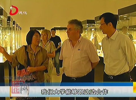 【同期声 英国威尔士大学校长休斯:我非常高兴能够到这儿来,然后看到这么多的作品,我知道德化的(陶瓷)文化源远流长,有千年的历史,就是我们来这儿学习的话,印象非常深刻,希望将来能够(合作),我们大学能够跟这边合作,能够把东西方的文化,能够通过两个大学的交流,把两个民族的文化促进带动起来。】