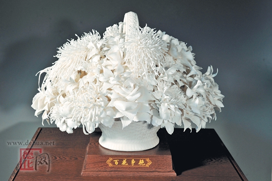 后来与瓷花工艺结缘,是因为一件获得金奖的陶艺作品《孔雀开屏》,作品中孔雀的羽毛看上去真假难辨,如此微妙精细的工艺一下子吸引了郑燕婷的注意,于是郑燕婷白天在厂里做瓷观音,晚上就在家里钻研捏弄瓷花。时光飞逝,当年那个还懵懵懂懂的她,现在因为出神入化捏制瓷花的技艺,已然成为德化瓷艺界家喻户晓的明星。