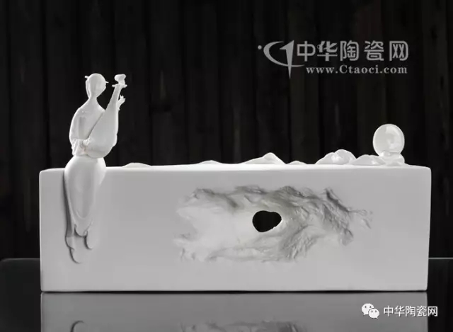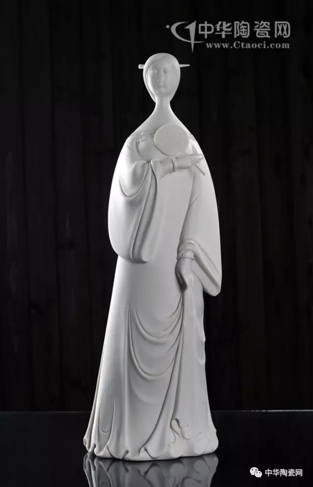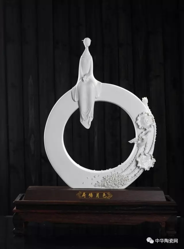 作品《明月》瓷质细腻,胎骨洁白,坚实致密,有凝脂似玉之感,工艺精湛,女子神采婀娜,娇羞动人,如清风明月般自然舒心。