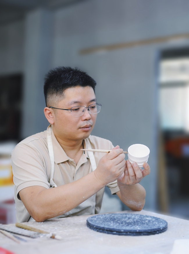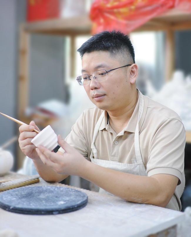 赖子文,1985年出生于“中国瓷都德化”,陶瓷世家,从小深受瓷都德化陶瓷文化熏陶 ,酷爱陶瓷创作,大学毕业后回瓷都德化从事陶瓷开发工作,先后进入佳美集团等从事陶瓷设计工作,经过多年的学习积累,熟练掌握陶瓷设计、制作、瓷土配方、拉坯、烧制、釉艺等技艺,2024年成立福建省德化县汇瓷窑陶瓷有限公司并任艺术总监。赖子文从事陶瓷设计创作10多年,主要作品有羊脂玉、冰种玉瓷茶具、手绘茶具、手拉坯等各种茶器。作品多次获得国内各评比大赛金奖,其作品深受广大客商、藏家青睐,广受好评。
