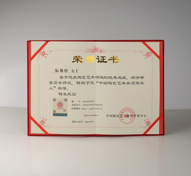 孙梅珍,女,汉族,1988年出生于世界陶瓷之都德化,高级工艺美术大师、中国陶瓷艺术非遗传承人、高级茶艺师、优秀创作坊工作室、中国陶瓷艺术文化发展中心会员,纪先生、纪夫人品牌创始人,倡导传统技艺与新质生产力创新技术的结合,以器为载体让文化艺术走进日常。问古过去,普惠当下,探索未来。