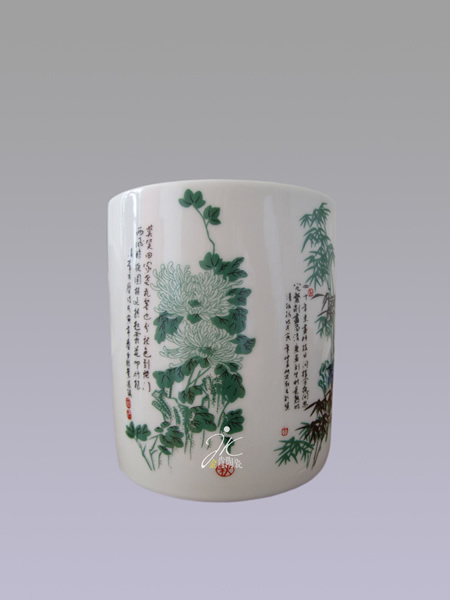 梅兰竹菊四件套陶艺笔筒,也是景德镇文房四宝中的一种,多用于书房,家庭茶具上面的摆设。该产品为本厂自主设计,该产品器形也可以用于筷篓等用品。