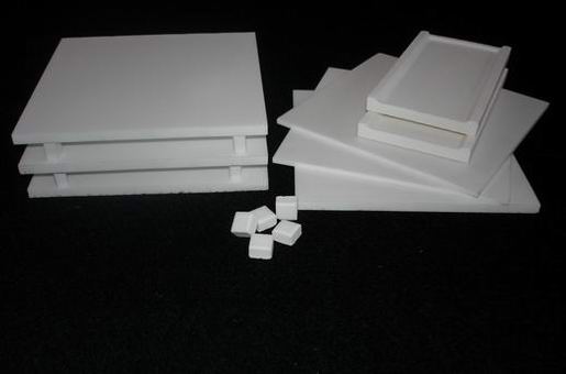 MIM粉末冶金专用承烧板: ●AL2O3:94% 使用温度:1600℃ 适用:用于真空炉气氛炉等烧结粉末冶金不脱碳,不渗硅;不渗碳,不与零件粘连,保证零件良好的形位尺寸; ●常规尺寸:250×250×6T 240×240×6T 220×220×6T 230×200×6T 215×215×6T 200×200×6T 160×120×4T 150×150×4T |