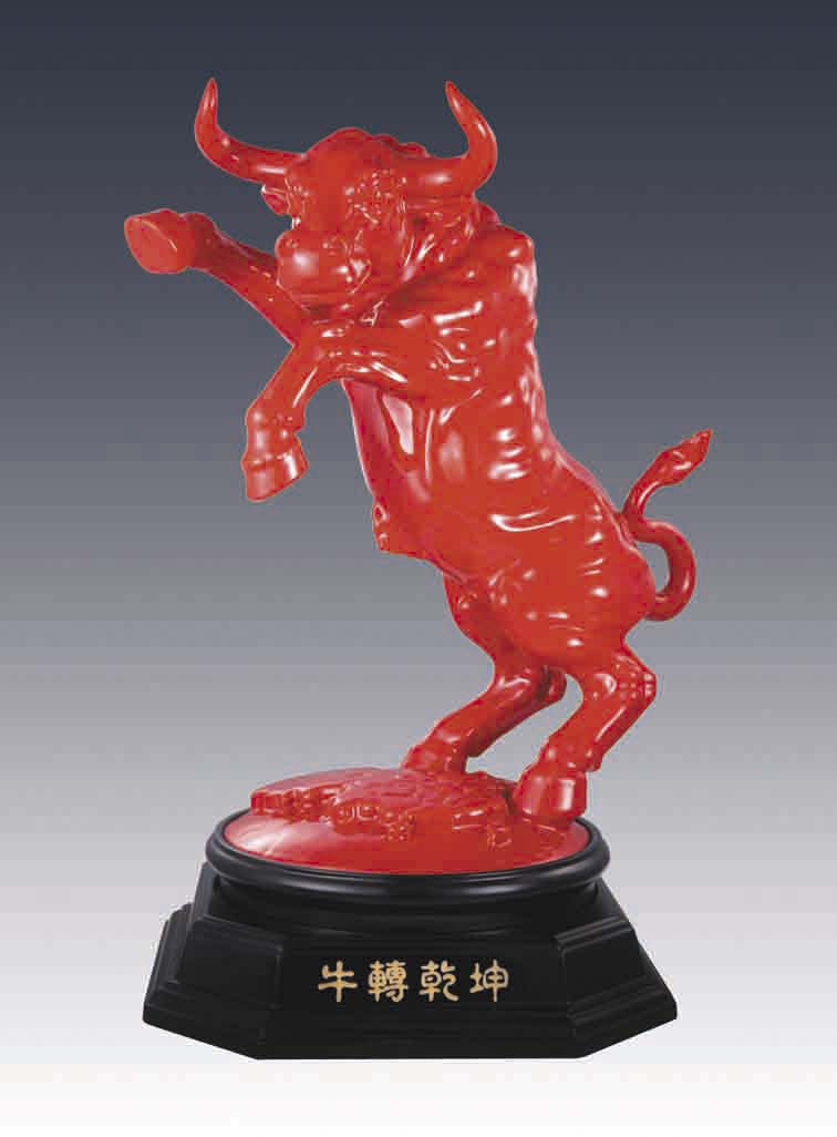 红牛昂头翘尾腾起,霸气十足,脚下是崛起的中国,经历了08年雪灾、地震等天灾人祸,顺利举办看奥运、残奥继而神七顺利升天,中国人遨游太空,扭转乾坤,中国牛。 牛为勤奋、善良、财富的象征,人民币代号¥就是牛的象形字,红牛可360度旋转,转一转,扭转乾坤,带来好运,恰逢国际金融海啸,各行各业面临危机困苦,牛年请红牛,大牛大吉,春到福到,苦尽甘来,为你转运发大财。 |