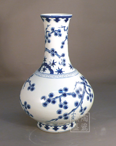 【商品编号】WS-047【商品说明】青花松树扁肚瓶【商品规格】高38cm 宽26cm 【所属类别】青花类