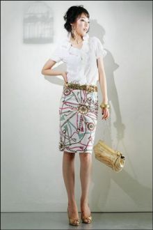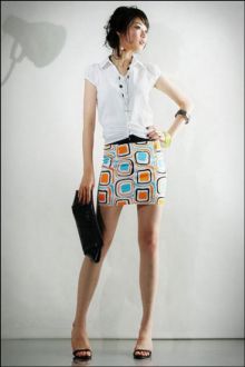 要领:活泼的图案,使普通款式的裙子变得吸引人,不过这种MINI的款式,不适合粗腿的MM.