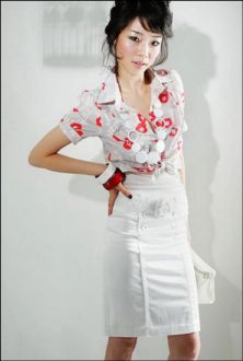 要领:胸部的装饰,可以掩盖胸型的不足;白色下装,有视觉膨胀感,广东身材娇小的MM最适合了。