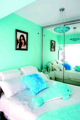 蓝色主卧室,让最平淡的日子也香艳起来,香艳这个词,在古时候也是用来形容女子闺房的。不过,显然,现代的香艳才是更符合它的字面意义的。所谓艳,即明艳。强调的是色彩,并且是浓烈而明亮的色彩,爱琴海一般的冰蓝、山茶花一样的纯红、柠檬原色的明黄,以及泛着光彩的亮白,只有春天的水果和鲜花的颜色才有资格被一一临摹。而香,则和那一抹存在于四周却不得描摹形状的温馨气味一样,不是一盏冰蓝的水晶灯,或者一套淡绿的茶具、一双亮红的塑胶拖鞋,而是这些所有细枝末节的总和。没有实体,而只能借助一切精致的道具,从骨髓往外渗透的这种情调,一定要给它一个称谓的话,姑且我们可以叫它小资。