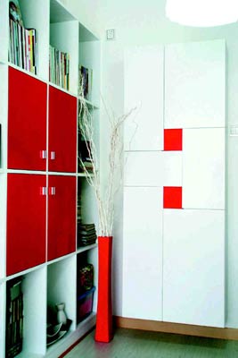 尽管色彩是实现这种风格的先决因素,但为了不显得空间过于繁复混乱,通常还是较少大面积地填充色块,或者在同一空间里出现三种以上的颜色,利用家具和摆设用品的色彩点缀,是更有效的形式。从这个意义上看,也许在面积较小的居室中,更适合以明艳颜色让人忽略空间的限制。