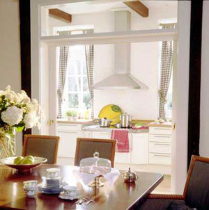 恬静写意的浅色喜欢宁静、淡泊生活的人应该选择浅色调作为厨房的基色。白、奶油、淡绿等颜色代表着和谐、统一。