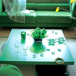 灯光可由强光改为弱光,尽量避免橘红等色光,不妨使用落地灯、隐藏式光源,来加强局部照明,使房间气氛更为柔和。亦可将灯罩换成翡翠、天蓝等冷色调,来改变光源效果。