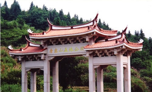 唐寨山森林公园位于德化县城关西北侧,公园东西宽达 4.2公里,南北长7.9公里,公园建设面积从6100亩扩大到23100亩,森林覆盖率达91%。公园计划总投资1.36亿元。该项目是我县“大城关”发展战略的一个重要配套工程,是县委、县政府为民办实事的重大举措。该工程在上级有关部门的关心和重视下,于2002年2月起开始动工建设,8月经省林业厅批准建立省级森林公园,10月被泉州市列为重点工程建设项目。经过近几年来的建设,公园已初具规模,现基本完成唐寨怡情、浐溪亲水、彩溪溯源、西山踏云四大景区共37个景点的配套工程建设。公园已成为集观赏、娱乐、休闲为一体,系功能较齐全、内涵丰富的现代城郊型森林公园。公园建成后,可根本上改变我县城区缺少城市公共绿地的状况,不但有利于提高城市品位,把德化城关建设成为“山水园林”城市,而且对于提高人民生活质量,促进我县精神文明建设具有十分重要的意义。