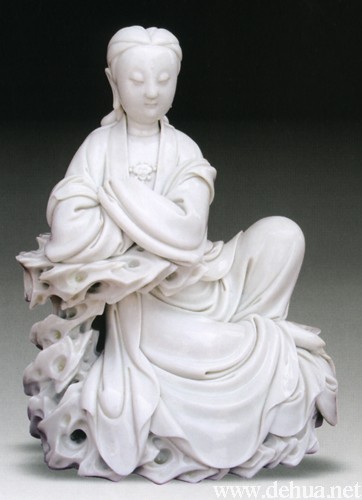 观音双目微沉,侧坐于岩上,双手拢于袖中,右肘支于岩石,神态安详,衣褶飘逸,富有变化。整尊塑像造型丰腴、细腻,精雕细刻,具有独特的艺术风格。