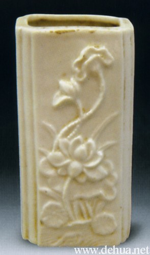 清中晚期 浮雕荷花菱形笔筒 高11厘米,长6厘米,宽5.5厘米