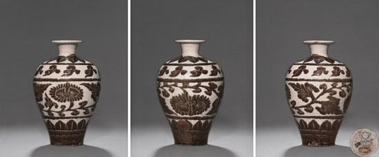 (■北宋 磁州窑刻花褐彩梅瓶 )