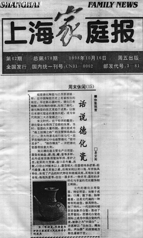 福建德化陶瓷与江西景德镇一样,在中国陶瓷历史上有着相当的地位。早在新石器时代,德化已有釉陶、印纹陶的烧制。而到了唐代,德化陶瓷的技艺更趋于成熟,以致后来德化瓷业的蓬勃兴起,成为宋代我国三大古瓷都之一。