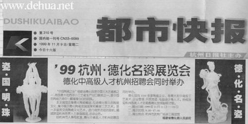 德化现有1100多家陶瓷企业,急需大批中高级工艺美术、企业管理、外贸英语、电脑设计等人才。热忱欢迎杭州各类人才到瓷都德化发挥聪明才智。