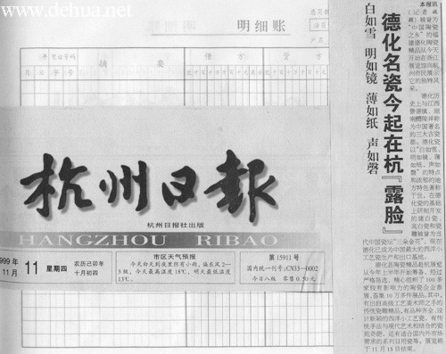 被誉为“中国陶瓷之乡”的福建德化陶瓷精品从今天开始在浙江展览馆向杭州市民展示它的独特风采。