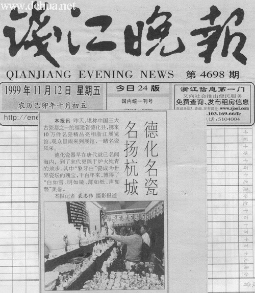 昨天,堪称中国三大古瓷都之一的福建省德化县,携来10万件名瓷精品亮相浙江展览馆,观众冒雨来到展馆,一睹名瓷风采。