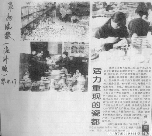德化县素有古瓷都之称。近年来,在陶瓷业群雄竟起的激烈竞争中,该县迈出新路,科技兴瓷,使古老的瓷都活力重现。