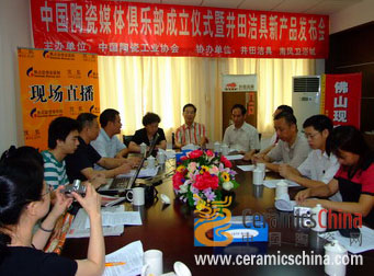 在挂牌仪式上,中国陶瓷媒体俱乐部领导感谢了中国陶瓷工业协会的帮助和支持,也感谢南风卫浴城为俱乐部提供长期的会议场地,并当场宣读了 俱乐部的章程和规定,希望俱乐部会员遵守有关守则,凝聚中国陶瓷媒体的力量,为中国陶瓷行业的可持续发展多作贡献。