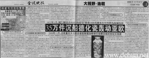 此次“的星号”捞获大量的德化青花瓷器,更可证明中国泉州德化外销陶瓷的繁盛。厦门大学教授、中国古陶瓷研究会会长叶文程说:“研究古代德化瓷器的外销,对探索我国特别是泉州港和南方几个垂要港口的古代海外交通和对外贸易,无疑是件很有意义的工作。”