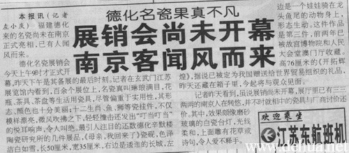 本报讯(记君左小庆)  福建德化来的名瓷尚未在南京正式亮相,已有人闻风而来。