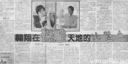 今年8月,国务院举办“中国文化美国行”活动,《大山鬼》、《三月三》两件瓷雕作品在纽约展出,受到美国观众和传媒的关注。