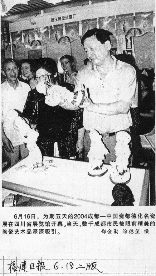 6月16日,为期五天的2004成都—中国瓷都德化名瓷展在四川省展览馆开幕。当天,数千成都市民被眼前精美的陶瓷艺术品深深吸引。