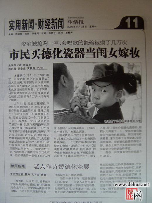 本报讯 5月21日,记者在南宁国际会展中心看到,德化名瓷展览会上不少工艺瓷器品卖得非常火爆。出现了供不应求的局面,一位市民当场还作诗称颂。