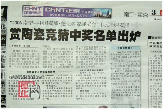另:南宁晚报“赏陶瓷竞猜中奖名单”也在今天出炉: