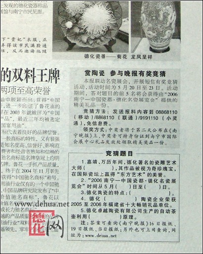 此外,报纸还举行“赏陶瓷 参与晚报有奖竞猜活动”如下图:
