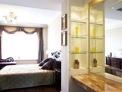由设计师亲自挑选的细致水晶灯饰、双色沙发的搭配,甚至于饰品的摆设,再加上抢眼的红色柜面与门片,在年轻风格之余,又增加了一抹属于女人味的小华丽风情。