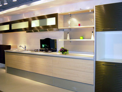 对于厨房家具色彩明度的选择,应选择那些能提高室内照度,保证采光与卫生的色彩明度为主。无论是厨房环境大小,一般都采用明度较高的色彩,较高的厨房家具色彩明度能够表现环境明快、整洁卫生的特点。同时,较高的色彩明度还能有效地调节室内光线。明度较高,显得比较干净整洁的色彩有比较纯的蓝色、黄色和各种明度较高的淡蓝、淡红、淡黄色系。