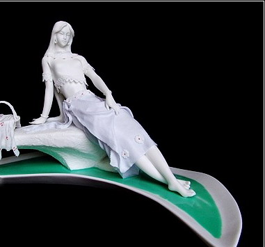 该瓷雕作品由一个美丽的少女坐在月牙泉边的一块石块上栖息,表现了人与大自然和谐的意境。作品造型新颖,线条流畅,体现作品的艺术美。