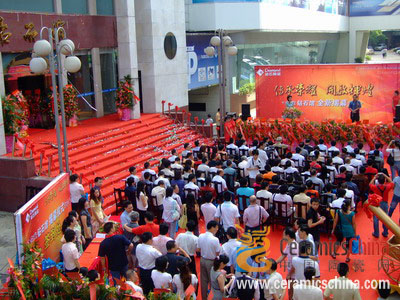 (本网新闻记者 苏振明 摄影报道)2007年7月19日,是一个书写进“钻石瓷砖”历史的日子,一个值得“钻石瓷砖人”铭记于心的日子,一个铺满鲜花和掌声的日子,一个承前启后,让“钻石瓷砖人”憧憬未来的日子---传承荣耀开启辉煌 钻石瓷砖新展厅开业---2007年7月19日。