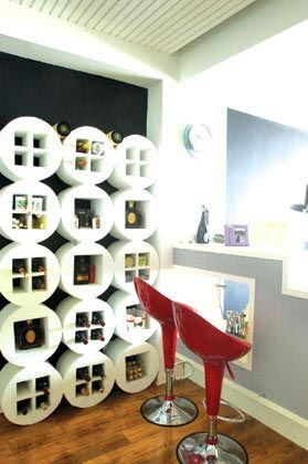 艺术造型的个性玄关。玄关不仅能收纳鞋帽和衣物,对于喜欢收纳好酒的人来说,如果你的家不够大,没有单独的吧台,完全可以把玄关做成酒柜和吧台,既满足储酒功能,又可实现二人就餐,同时又兼具美观效果。