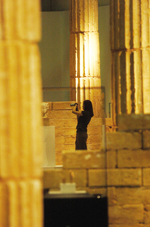 为了营造这个希腊世界,展览的第二部分《古希腊人的神灵世界》将在复原的古希腊帕特农神庙遗址内展出,“我们仿造了这个希腊遗址,让观众在展览中走上一个高台就像走上那个神庙一样,”黄雪寅介绍第二部分所有的雕像全部都是裸展,而不是放在玻璃橱窗内,“这样可以让观众直接与神灵对话,令其身临其境。”