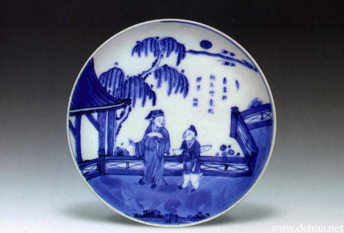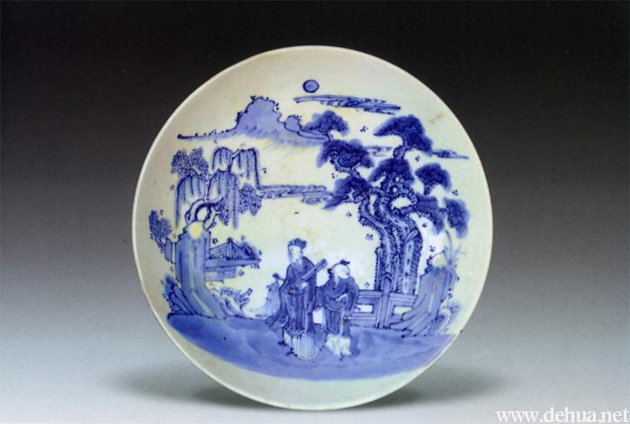 ▲清雍正 青花携琴访友纹盘 口径20cm